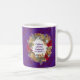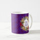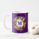Moderne, dekorative ROYAL LILA Weihnachtskranz KAFFEE TASSE mit individualisierbarem Text - vorne CELEBRATE JESUS und hinten ein MONOGRAM - das Sie mit Ihren eigenen Details personalisieren können. Es gibt eine subtile Fliesenbotschaft, die sagt: CHRISTMAS BLESSINGS. Passende Weihnachtsgeschenke und Wohngestaltung sind in der CHRISTMAS WREATH Kollektion von Berean Designs erhältlich.