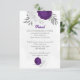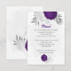 Romantische königliche lila-weiße Blume mit silbernen Blätter botanische Hochzeitsdetails Umzäunungskarten. Die Einzelheiten des Glitzer werden simuliert.