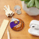 Dieser Basketball-Schlüsselanhänger ist in einer Basketball-Grafik mit leicht anpassbarem Spielernamen und Trikotnummer sowie Schulname und Maskottenname untergebracht. Der Basketball hat zwei farbige Tafeln, eine lila und eine weiße, mit einer digital erzeugten Textur für ein künstlerisches Erscheinungsbild - von katz_d_zynes