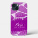 Helles Tier gemustert iPhone Gehäuse in fett lila Tönen. Personalisieren Sie dieses Objekt mit Ihrem vollen Namen. Dieses Beispiel liest derzeit Skye Jackson. Dieses originale Muster von Sarah Trett basiert auf dem Muster einer Giraffe mit einem für www.mylittleeden.com auf Zazzle erstellten Muster-Overlay mit einem Punkt-Punkt-Punkt-Punkt-Effekt.
