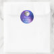 Lila Weltraumstars über dem Mond Runder Aufkleber