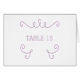 Moderne und einfache Whimsical Blühe Monogram Wedding Tischnummer Card mit einem eleganten Swirl Motiv in lila. Einfach anzupassen, fügen Sie die entsprechende(n) Tischnummer(en) in das Textfeld ein. Klicken Sie auf "Anpassen", um weitere Personalisierungsoptionen zu erhalten.