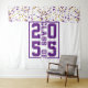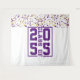Erstellen Sie dauerhafte Erinnerungen mit einer Kamera und Ihrer Klasse ____ Sporttypografie Tapestry! Weißer Hintergrund, lila Typografie, individualisierbares Jahr, Imitate lila und goldener Konfetti-Header ganz oben.