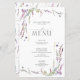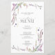 Mit diesem angesagten 5.5"x 8.5" Menü-Design mit hübschen und feinen, trendigen Wildblumen schaffen Sie den perfekten Empfang. Personalisieren Sie Ihre Details mit schönen modernen handgeschriebenen Kalligrafien in weichem Offschwarz. Ideal für, aber nicht beschränkt auf diesen Garten und Garten Hochzeit. Teil eines entsprechenden Set. Vollständige Sammlung hier: https://www.zazzle.com/collections/purple_lilac_lavender_wildflower_wedding-119347990909221303. Copyright Elegant Invites, alle Rechte vorbehalten.