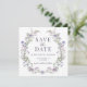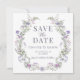 Dieses botanische, rustikale Foto mit seinem eleganten Boho-Design und einem lila Lavendel-Wildblume-Kranz besticht durch seine rustikale Eleganz.