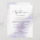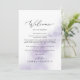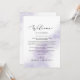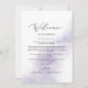 Diese Aquarellwaschmittel lila Begrüßungsbriefe & Reisekarten sind perfekt für eine moderne Hochzeit. Das einfache und klassische Design besticht durch eine lila Pastell-Lavendel-Farbe mit minimalistisch elegantem Stil. Auf der Vorderseite der Karte befindet sich ein Begrüßungsschreiben, auf der Rückseite der Karte befindet sich der Hochzeitstag. Diese Noten sind ideal für Hochzeiten in Urlaubsort und Begrüßungstaschen für Hotelgäste.
