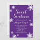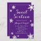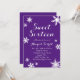 Ein Schneeflocken schmückt diese lustige 16 . Geburtstag Party Einladung auf lila Hintergrund. Wenn Sie zusätzliche Koordinierungsaufgaben für Ihre Veranstaltung benötigen, kontaktieren Sie uns bitte unter prettyfancyinvites@gmail.com mit Ihrer Anfrage.