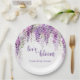 Schöne lila Wisteria-Blume in Aquarellfarbe hängen von der Spitze dieses Brautparty Papierteller zu feiern "Liebe ist in Blüte". Ideal für den Tisch im Frühling, lila oder blumengeschmückt, Hochzeitsdusche oder Pärchendusche. Dieser Teller kann auch für eine Geburtstagsfeier oder eine andere Blumenfeier im Frühjahr angepasst werden. Verfügbar mit passenden Produkten.