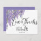 Lila Wisteria Baum Lavender Wedding Danke Design. Design ist leicht zu personalisieren, wenn Sie Schriftart ändern möchten, klicken Sie bitte auf, um weitere Anpassungen. Pastellfarben sind ideal für Frühjahr- und Sommerhochzeiten. Das Design spiegelt moderne und schlichte Dekorationen der Hochzeit wider.