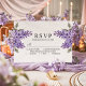 Diese Lila florale Wisteria Wedding RSVP Card ist ideal für Paare, die einen romantischen Garten oder eine Hochzeit mit botanischem Thema planen. Dieses Design mit üppigen, in lila Farbtönen gehaltene Aquarellblüten strahlt Eleganz und Charme aus. Die gepflegte und klassische Typografie sorgt für eine einfache Lesbarkeit, während die Auswahl und die UAWG der Speisen den Gast leicht ansprechen. Diese RSVP-Karte eignet sich ideal für Frühjahr-, Sommer- und rustikale Hochzeitsfeiern und ist eine nahtlose Ergänzung zu Ihrem passenden Set für Hochzeitskunst.