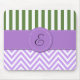 Lila Zigzag, Zickzack, grüne Streifen, Monogramm Mousepad