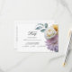 This reply card perfectly mirrors your main invitation, featuring the same lush watercolor florals—soft lavender, creamy white roses, buttery yellows and elegant sage foliage. The design maintains the high-end, romantic aesthetic of the Garden Bloom Collection while providing clear, essential details for your planning.