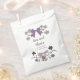 Boho-Bogen-Thema Brautparty Gevor-Tasche mit handgezeichneter Abbildung von lila Band und Blume.