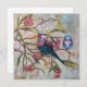 OIl Gemälde, die zwei Coracias Caudatus (Lilac-Brustwalze) auf blühenden Baumzweigen und einem hellen Hintergrund darstellen.