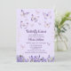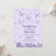 Feiern Sie die bevorstehende Ankunft Ihres Kleinen mit unserer Lilac Butterfly Baby Girl Shower Einladung. Mit charmanten Illustrationen von zarten lila Schmetterlingen, die über einem ruhigen Lavendelfeld flattern, Set diese Einladung einen skurrilen und zauberhaften Ton für Ihre Babydusche. Mit viel Liebe zum Detail gestaltet, erfasst es die Schönheit der Natur und die Freude an der Mutterschaft. Personalisieren Sie die Details, um es einzigartig zu machen und teilen Sie die Begeisterung mit Ihren Lieben. Mit seinem eleganten Design und seiner beruhigenden Farbpalette verlasse diese Einladung Ihren Gästen einen bleibenden Eindruck.