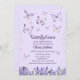 Feiern Sie die bevorstehende Ankunft Ihres Kleinen mit unserer Lilac Butterfly Baby Girl Shower Einladung. Mit charmanten Illustrationen von zarten lila Schmetterlingen, die über einem ruhigen Lavendelfeld flattern, Set diese Einladung einen skurrilen und zauberhaften Ton für Ihre Babydusche. Mit viel Liebe zum Detail gestaltet, erfasst es die Schönheit der Natur und die Freude an der Mutterschaft. Personalisieren Sie die Details, um es einzigartig zu machen und teilen Sie die Begeisterung mit Ihren Lieben. Mit seinem eleganten Design und seiner beruhigenden Farbpalette verlasse diese Einladung Ihren Gästen einen bleibenden Eindruck.