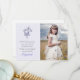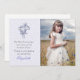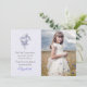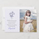 Eine schöne Fotokarte mit lila Kreuz verziert mit Blume und Bogen auf sanften lila Blumenhintergrund. Als Erste Kommunion danke Ihnen Foto-Karte, kann aber für jeden religiösen Anlass angepasst werden.
