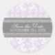 Save the Date für Hochzeitsfeiern, in elegantem hellpastellfarbenem Lavendel lila, grau und weiß klassisches Blumendstaubmuster, die perfekte Ergänzung zu Ihren Save the Date Kartenumschlägen, die in vielen passenden Hochzeitsprodukten erhältlich sind. Kontaktieren Sie uns für eine Farbänderungsanfrage.