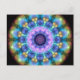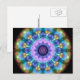 Dieses Kaleidoskop zeigt ein Muster in lila blau und lila, die leuchtenden Elemente lassen es wie eine Kerze hinter einem Fleckglas aussehen