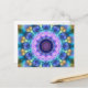 Dieses Kaleidoskop zeigt ein Muster in lila blau und lila, die leuchtenden Elemente lassen es wie eine Kerze hinter einem Fleckglas aussehen