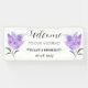 Modernes, elegantes, lilacs, lila florale Aquarell Sommer Hochzeit Begrüßungsbanner. Rustikales, violettes Wildblumen-Banner. Ideal für frische Weds. Man kann es mit Namen und Datum von Braut und Bräutigam personalisieren.