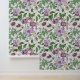Dies ist ein Vintages Aquarellmuster, das sich nahtlos in lila, lila und weiße Blume mit grünen Blätter auf weißem Hintergrund abbildet.