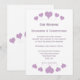 Lilac hearts design wedding invitation. Customise this heart invitation with your wedding details and then have it printed or instantly download it. Should you require any help with customising then contact us through the link on this page. Lilac heart design personalised wedding invitation for printing or instant download