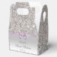 Maßgeschneiderte Vorzugkästen für süße 16 Geburtstagsparty. Elegante, kundenspezifische Silber- und Lila-/Lavendelboxen mit einem funkelnd Glitzer, Rhinestones, Sequins-Muster, niedlich glänzender, bedruckter Vektorbogen und hübscher, stilvoller bedruckter Bilddiamanten, Schmuck und dunkelgrauem Text. Ich habe passende Produkte in meinem Geschäft. Text, Schriftart und Farben des Schriftartes sind individuell auf Ihre Bedürfnisse zugeschnitten. Wenn Sie Hilfe bei der Anpassung Ihres Produkts benötigen, kontaktieren Sie mich bitte über meinen Shop. BITTE BEACHTEN SIE: Dies sind flache gedruckte Grafiken - nicht echte Bögen, Juwelen oder Sequins. Ich habe passende Produkte in meinem Geschäft.