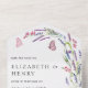 Eine Hochzeitseinladung ist ein wunderschönes Design, das das Wesen der zarten und anmutigen Schönheit der Natur einfängt. Die sanften Wasserfarbenstriche und lebhaften Farbtöne schaffen ein Gefühl von Frische, Reinheit und Freude, das perfekt für Hochzeitsfeiern ist. Die Lavendeltöne im Design verleihen der Touch Eleganz und Eleganz, während die rustikalen Elemente ein Gefühl von Wärme und Intimität schaffen. Die Ergänzung des Schmetterlingsdesigns verleiht der Einladung ein Gefühl von Laune und Verspieltheit und bringt einen einzigartigen und charmanten Charakter mit sich, der sie von anderen Hochzeitseinladungen abhebt. Die Wildblumen des Designs sind zart angeordnet und schaffen eine atemberaubende visuelle Darstellung der Naturschönheiten und das Versprechen neuer Anfänge. Die Ästhetik ist sowohl elegant als auch spielerisch, was sie zu einer perfekten Darstellung des feierlichen Geistes einer Hochzeit macht. Eine Einladung ist ein wunderschöner und herzlicher Ausdruck von Liebe und Dankbarkeit, der sicher von Ihren Lieben geschätzt wird. Es ist eine wunderbare Möglichkeit, Ihre Gäste zu einem besonderen Tag einzuladen und gemeinsam die Schönheit Ihrer Liebe zu feiern. Vollständige Sammlung: https://www.zazzle.com/collections/trendy_elegant_flower_lavender_collection-119835281918261692