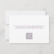 Diese Lila Blumen Elegant Wedding RSVP Card präsentiert zarte Blume auf einem lila Hintergrund, ergänzt durch zeitgenössische Typografie. Die Gäste können in ihren Namen und Ernährungsgewohnheiten schreiben, oder sie können den QR-Code auf der Rückseite benutzen, um online zu antworten. Es ist vollständig anpassbar mit den Namen des Paares und antworten am Datum, sowie den QR-Code und Anweisungen auf der Rückseite. Das formelle Design und die Formulierung fügen Ihrer Hochzeitsfeier eine Touch der Eleganz hinzu. Wenn Sie den QR-Code nicht verwenden möchten, löschen Sie einfach die URL und die Anweisungen auf der Rückseite. Diese RSVP Karte verbindet sich wunderbar mit der Verona Sunset Orange Wedding Einladung.