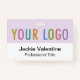 Personalisieren Sie unser berufliches PVC-Namensschild mit Ihrem Firmenlogo, Mitarbeiternamen, Jobtitel oder anderen benutzerdefinierten Texten. Es ist aus haltbarem PVC-Kunststoff. Lila und in anderen Farben gestaltet, mit modernem minimalistischem Design von MISOOK. Alle Farben sind anpassbar. Erhältlich mit einem Lanyard, einer Metallklammer oder einer einziehbaren Rolle. Die Abmessungen sind 3,38 Zoll x 2,13 Zoll. Keine Mindestbestellmenge und keine Einrichtungsgebühr.