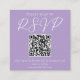 Diese schöne lila Hochzeitskarte mit Website QR Code bietet eine wunderschöne weiße Typografie auf einem weichen lila Hintergrund für eine Frühjahrszeremonie. Lavendelpastellplätze sind eine delikate Farbwahl für einen eleganten Gartenbesuch.