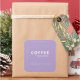 Produktaufkleber im luxuriösen lila Hintergrund mit weißem Text. Perfekt für diese minimalistische Verpackung.