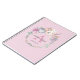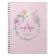 Ein hübsches Notizbuch in lila mit einem Line Art Blumenkranz gefüllt mit pastellfarbenen Aquarellfarben - lila, pink und grün. In der Mitte befindet sich Ihr Monogramm mit Ihrem Namen und Titel darunter. Der Hintergrund ist weich. Macht ein großartiges Geschenk.