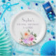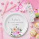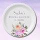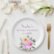 Personalisieren Sie diese elegante, helle, florale Papierplatte, ein wesentliches Element für Ihre Brautparty-Ansammlung. Diese Papiertafel mit Set und knusprigem weißem Hintergrund weist ein zartes Watercolor-Design auf, das eine harmonische Anordnung von Rosa-, Pfirsich- und Lilac-Rose mit sanfter Vegetation präsentiert und Ihrem Tisch eine schicke Touch verleiht. Ideal für Ihre Rose Brautparty Party, Mittag oder Picnic.