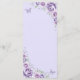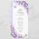 Lilac purple, silver and white Quinceanera celebration slim menu card. Features, script font, silver butterflies, watercolor roses and tiara. Perfect for an elegant princess style glam celebration. Personalize with your own details.