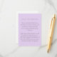 Dieses einfache Lilac Wedding Insert Card Design für zusätzliche Informationen für Hochzeitsgäste. Im hinteren Teil befindet sich ein originales Aquarell-Gemälde aus lila Lavendel-Rose, das es auch zu einem Teil der Hochzeitskollektion von Lilac Watercolor Rose macht, wo Sie alle passenden Produkte finden.
