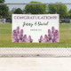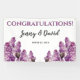 Ein Lilac Spring Garden Hanging Wedding Banner mit feinen lila Blume auf weißem Hintergrund. Der Text enthält: Glückwunsch, The Bride und Groom's First Names and Wedding Date. Zum Personalisieren fügen Sie einfach Ihren Text in unsere Vorlage ein und ersetzen das Beispiel. Schauen Sie sich unbedingt die komplette Hochzeitskollektion von Lilac Spring Garden an, um passende Karten und Empfang Accessoires zu erhalten.