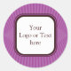 Ein gestreifter lila Aufkleber, mit dem Sie Ihr eigenes Logo oder Text personalisieren können. Fügen Sie Ihr eigenes Bild hinzu, verwenden Sie als Nametags, identifizieren Sie Mitglieder Ihres Brautparty, auf Gastgeschenke, Bewerbernummern, Werbeartikel, etc.