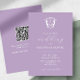 Rett auf Papier und Geld mit dieser Mono Budget Hochzeitseinladung mit QR-Code. Dieses schlichte und dennoch elegante Design bietet neben der kalligraphischen Typografie einen klassischen Sans-Schriftart in Weiß über einen lila lila Hintergrund. Ein elegantes Wappen umrahmt die Initialen von Braut und Bräutigam. Die Karte kehrt zu einer soliden Farbe zurück, die mit Ihrem Hochzeitsstichcode übereinstimmt und Platz für weitere Details. Alle Farben sind für Ihre perfekte Farbanpassung anpassbar. Für nachhaltigere Hochzeitseinladungen besuchen Sie bitte www.zazzle.com/dotellabelle