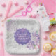 Eine Wolke aus lila Blume in Grau, Lavendel und Rosa. Ein tiefes Lavendel Aquarell Abzeichen mit dem Namen der Veranstaltung oder des Paares.