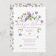 Baby in Blüte! Diese hübsche Babydusche lädt Sie ein zu entspannenden Frühlingsfarben-Blume wie Lila, Traubenhyakinth, Tulpen und Klee, Set vor einer knusprigen, weißen Kulisse. Die lebhaften Purples und die frischen Grüntöne, die durch ein elegantes Drehbuch und eine klassische Schrift ergänzt werden, schaffen eine charmante Kulisse, die perfekt dazu geeignet ist, die Freude am Neuanfang zu verkünden.