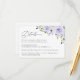 Vervollständigen Sie Ihre Hochzeitssaison mit dieser stilvollen Detailkarte. Das Design zeichnet sich durch lila Aquarell-Blume und Grünpflanzen auf weißem Hintergrund aus.
