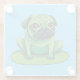 Niedlicher grüner Mops, der einem Frosch ähnelt, der auf einem Lilipad sitzt. Die Hintergrundfarbe kann geändert werden.