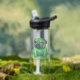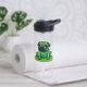 Niedlicher grüner Mops, der einem Frosch ähnelt, der auf einem Lilipad sitzt. Die Hintergrundfarbe kann geändert werden.