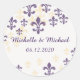 Diese runden Aufkleber zeichnen sich durch ein trendiges und dennoch raffiniertes Design kaskadierender Lilie-Symbole in einem lila und gelben Mardi Gras-Gefühl aus. Ideal für Ihre New Orleans Hochzeit, Save the Date und Mardi Gras Event Korrespondenz und Projekte.
