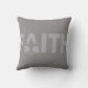 Ich habe Vertrauen. Dieses Kissen hat doppelten Glauben (beiderseits) in fett grauen Sanserif-Buchstaben und eine einfache Lilie-Ikone. Die Hintergrundfarbe kann angepasst werden.