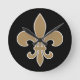 Lilie Gold mit weißer und schwarzer Kontur Runde Wanduhr