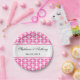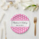 Weiß und heiß rosa Fleur de lys Muster Hochzeitspapier Teller. Weiße Lilie Muster auf heißrosa Hintergrund.