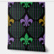 Schwarz mit Imitaten lila, Gold, und grün Glitzer Mardi Gras Lilie Muster von Holiday Hearts Designs (Rechte vorbehalten).